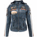 Le Legendary 58™ Bleu Patiné a été conçu pour les motardes qui cherchent un look "Racing" authentique sans sacrifier leur féminité.
