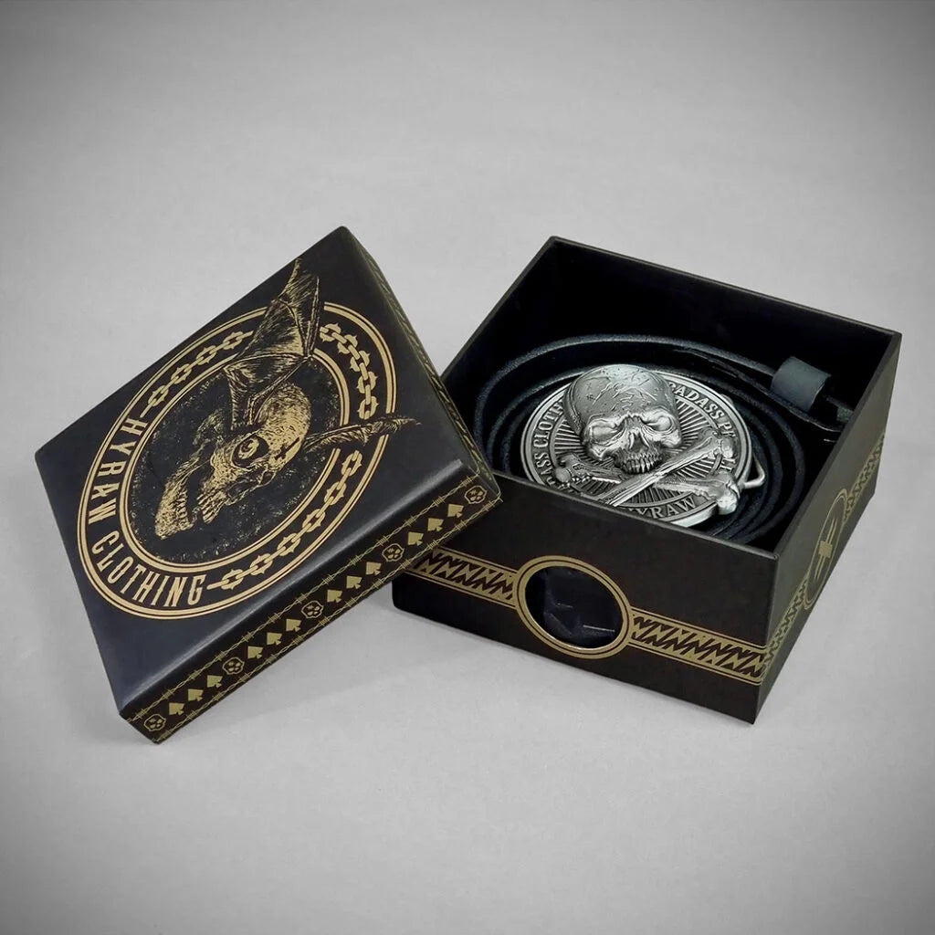 La Ceinture Brotherhood™ | Badass Biker ™ est un hommage à la culture motarde la plus pure. Fabriquée en cuir véritable noir, elle affiche un motif HYRAW SPADES embossé, symbole de puissance et de détermination. Sa boucle imposante en métal vieilli arbore un crâne et des os croisés – une icône intemporelle du monde biker.