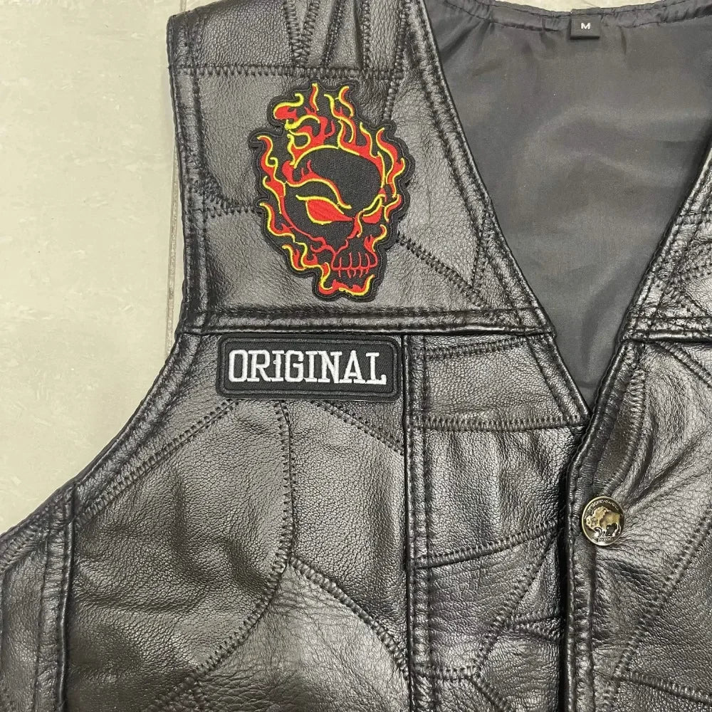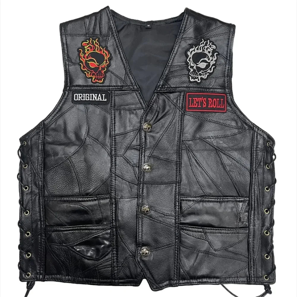 You're not just wearing a leather vest , you're donning an identity. This sleeveless leather motorcycle vest with a patch is more than just an accessory: it's your manifesto.